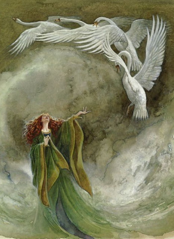 Swan Maidens: In Norse and Germanic folklore, swan maidens were supernatural female creatures who could turn into swans by wearing a special feathered skin or garment. In Norse myth, some Valkyries were said to be swan maidens, who flew through the air to collect fallen warriors.