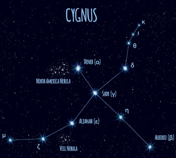 Cygnus, Latin for "swan," is a northern constellation, also known as the Northern Cross for the cross-shaped asterism formed by its brightest stars. It is best seen in late summer and early autumn and lies along the plane of the Milky Way, making it rich in deep-sky objects like nebulae and star clusters. Its brightest star, Deneb, is part of the prominent Summer Triangle asterism, along with Vega in Lyra and Altair in Aquila.