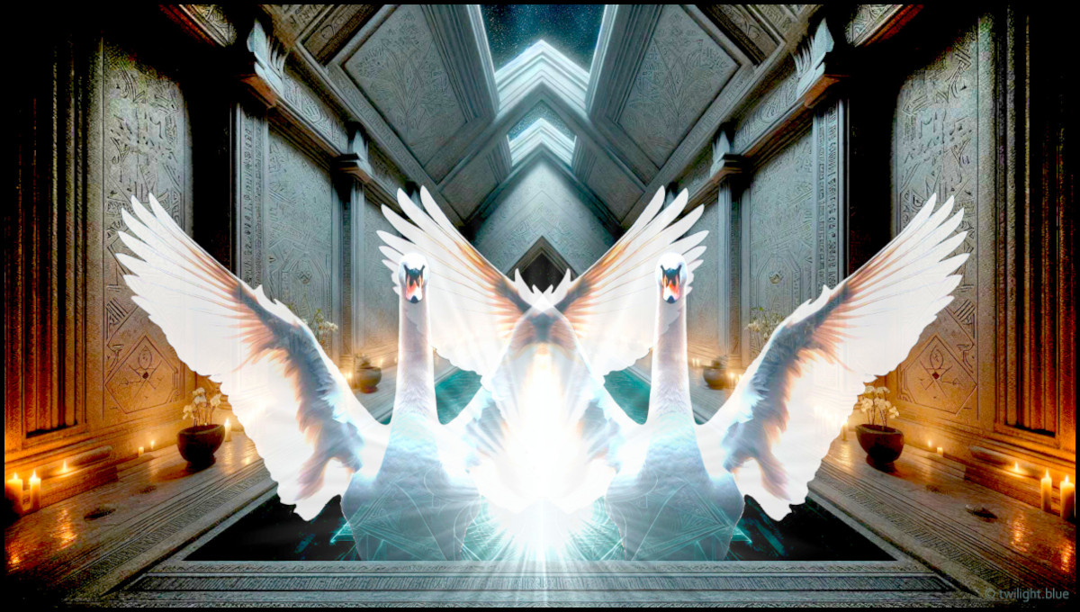 At the page bottom is a link to interesting spiritually related swan info I've gathered, but none of it speaks about a heavenly temple with swan angels of love and light. However it does provide insight worthy of contemplation and further investigation. I'll keep digging and adding whatever I discover.